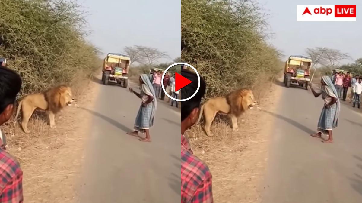 एआई नहीं सच है? खूंखार दरिंदे से अकेले भिड़ गई दादी, हाईवे पर निकले शेर को छड़ी लेकर भगाया